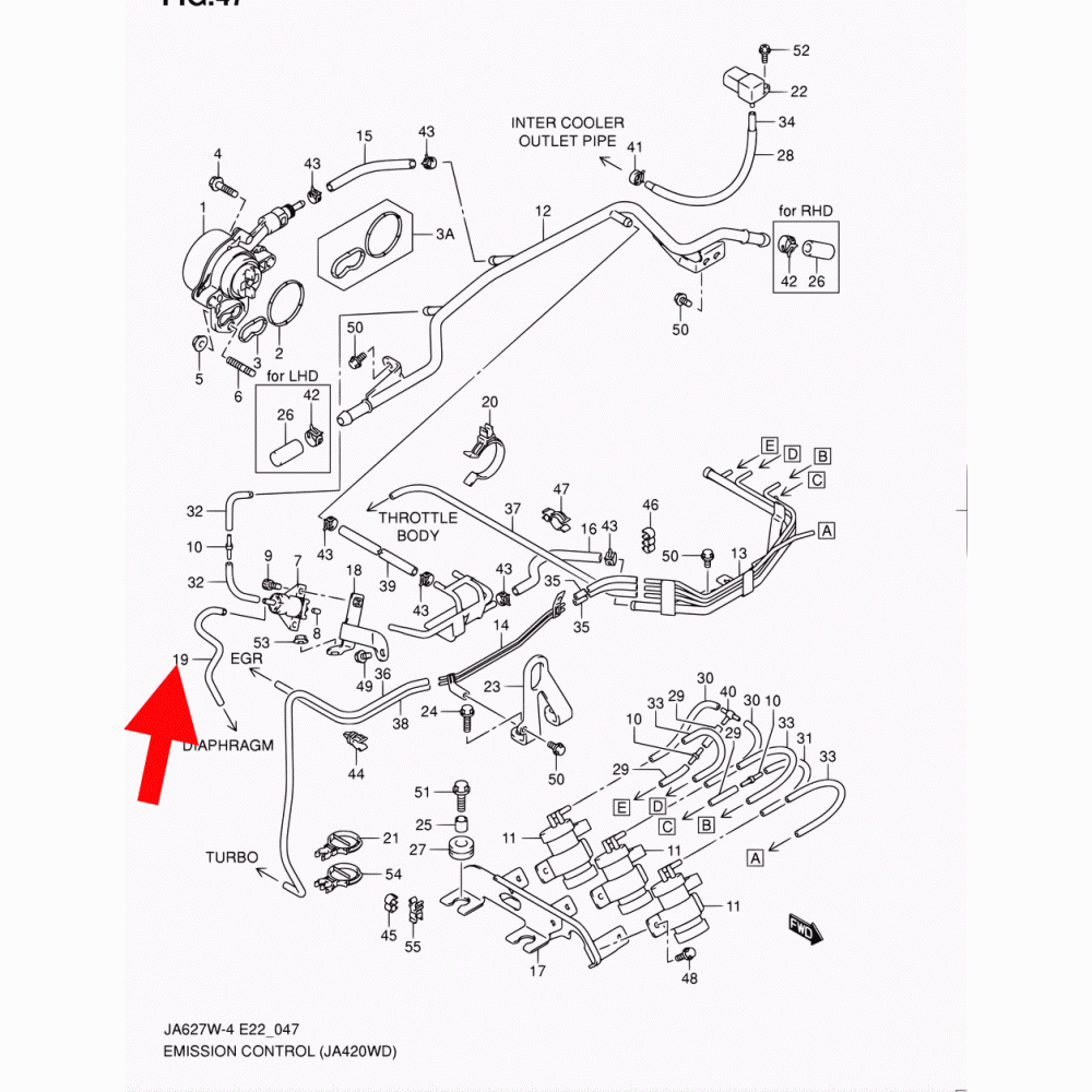 Вакуумный шланг от клапана управления всасыванием к объему двигателя 2,0 дизель № 19 (смотрите в рубрике фото схему расположение, там указано стрелкой) UA Вакуумний шланг від клапана управління всмоктуванням до об'єму двигуна 2,0 дизель № 19 (див. у рубриці фото схему розташування, там вказано стрілкою) номер оригинала 18419-68DB0 Для просмотра нажмите рубрику фото. +38(095)0849790,+38(067)5832955