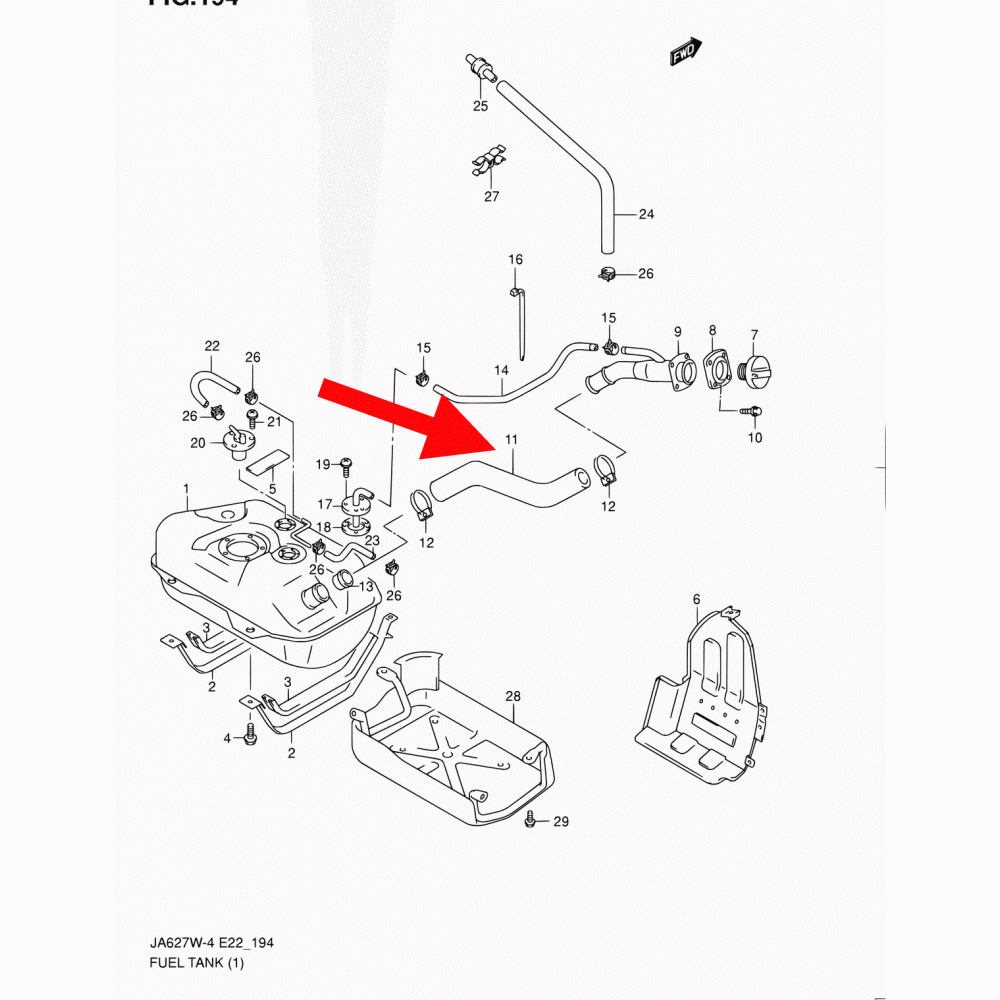 Шланг заливной горловины топливного бака от горловины до бака № 11 (смотрите в рубрике фото схему расположение, там указано стрелкой) UA Шланг заливної горловини паливного бака від горловини до бака № 11 (дивіться в рубриці фото схему розташування, там вказано стрілкою) номер оригинала 89241-52D10 Для просмотра нажмите рубрику фото. +38(095)0849790,+38(067)5832955
